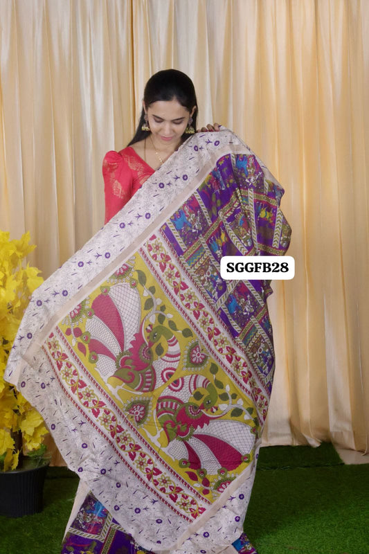 Viscose georgette saree with contrast blouse and Pallu prebook🥳