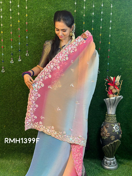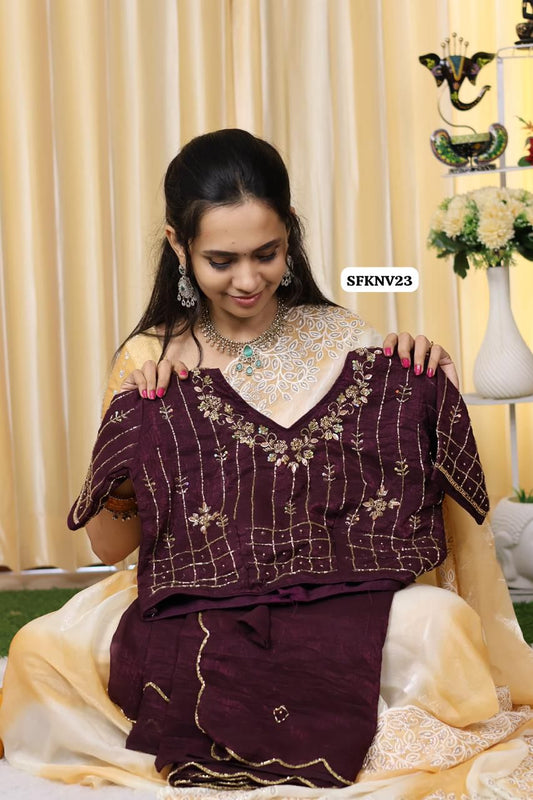 Crunchy soft space silk saree with heavy work stitched blouse🥳