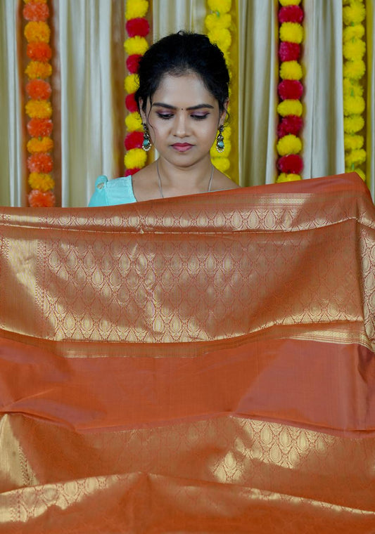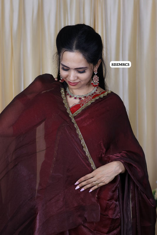 Heavy metallic space silk saree with running blouse 🥳Brownish marron