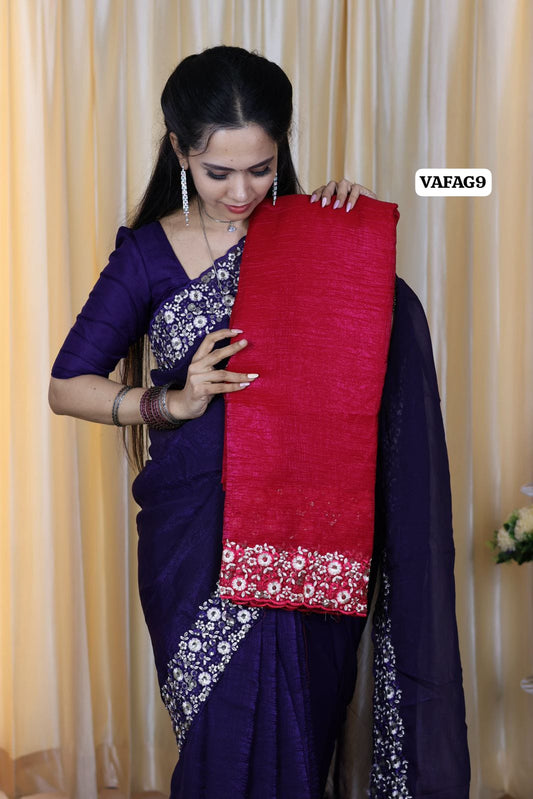 Crushed space silk with embroidery scalloped border 🥳🔥prebook Dispatch time 20 to 25 days