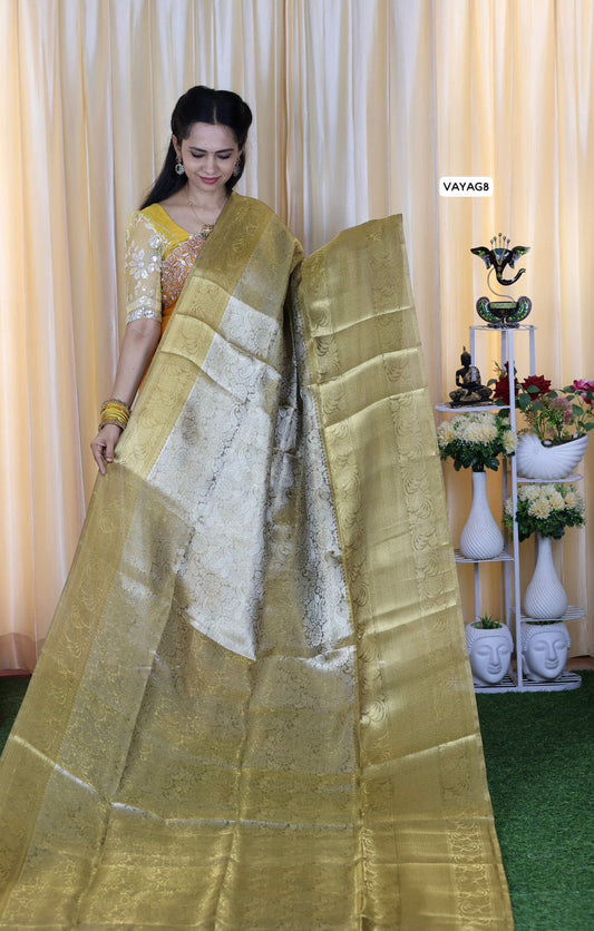 Space silk tissue sarees with heavy embroidery chumky work blouse unstitched 🥰😎🥳
