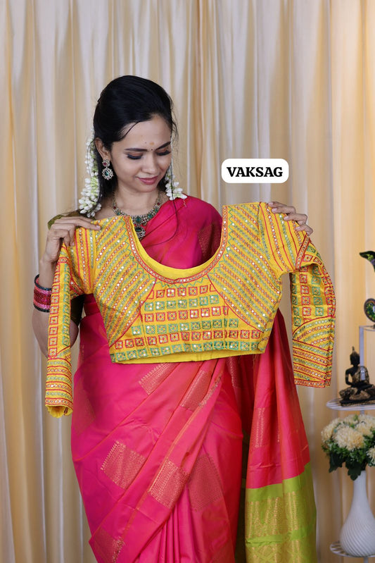 Heavy georgette saree with mirror work in saree and blouse🥳prebook