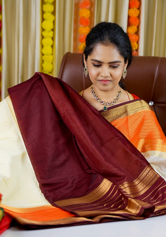 Onam special kerala cotton saree with unique color combinations. Zari buttas 🥳