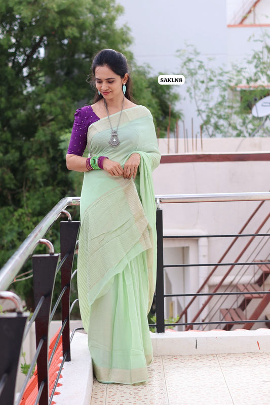 Pure viscose Chinnon saree with beautiful Pastel color paired with viscose zari blouse🥳 prebook