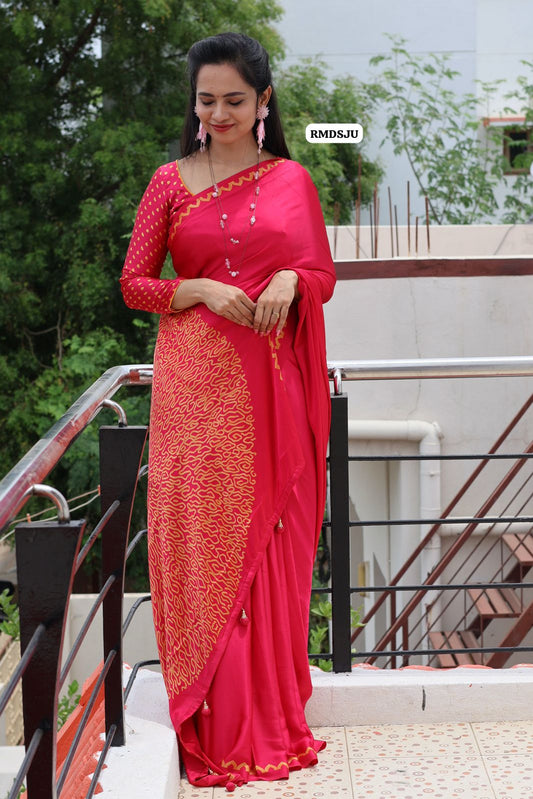 Premium modal satin .silk saree with .heavy latkan 🥳