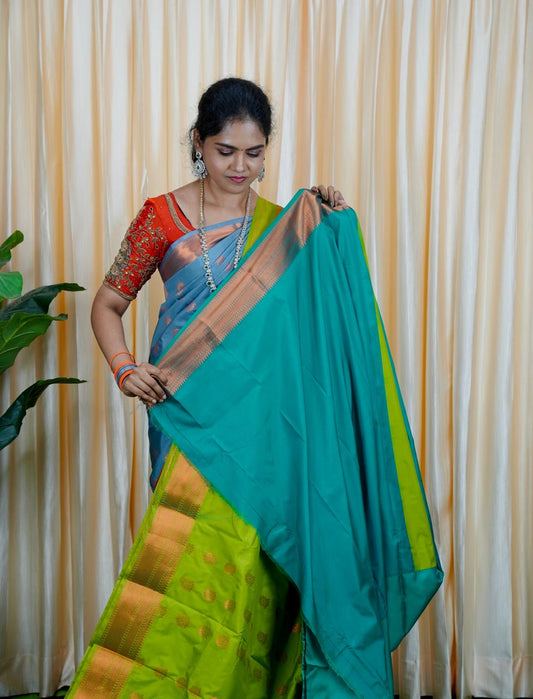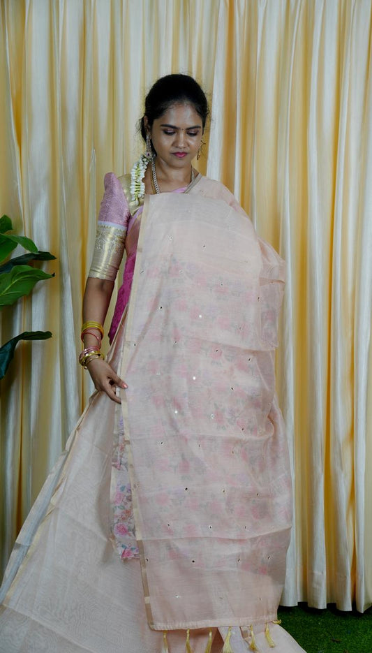 Tissue .semi silk .with zari weaving mango motifs 🥳