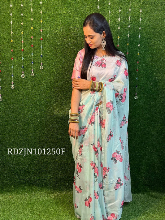 Soft organza with floral design and cut work scallop border along with handwork and pearl work 🥳