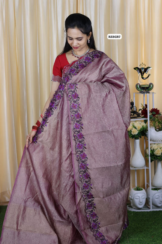 Premium soft Chinnon silk with chumkey and embroidery work stitched 🔥🥳Violet with pink