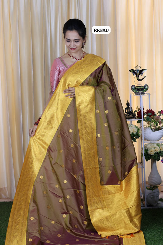 semi soft silk saree with 1000 buttas with running blouse 🥳Golden brown