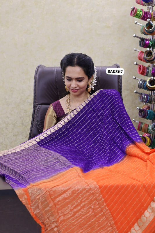Premium Viscose Georgette Saree checks zari With Dola Viscose Blouse 🥳prebook