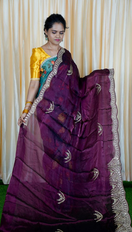 Crushed space silk with embroidery scalloped border 🥳prebook Dispatch time 20 to 25 days