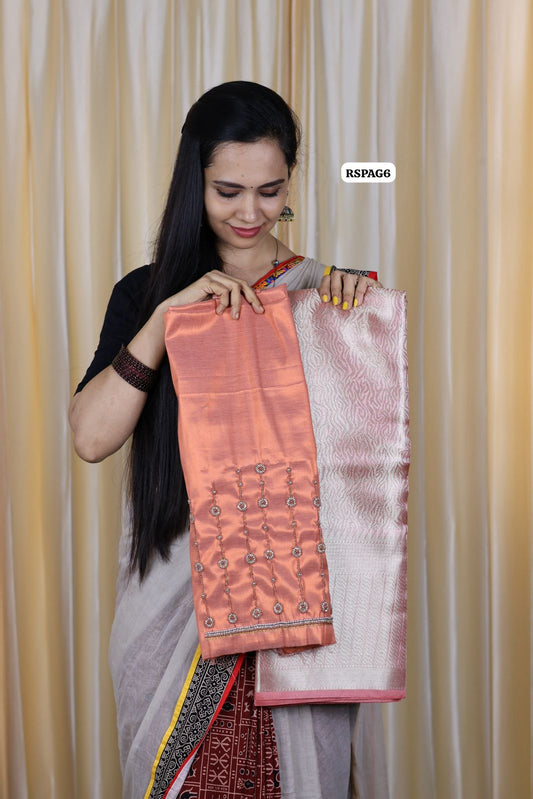 Premium Space silk saree with embroidery work and contrast blouse 🥳 prebook