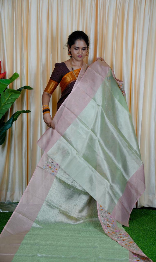 Premium Space silk saree with embroidery work and contrast blouse 🥳Dispatch time 20to25 days