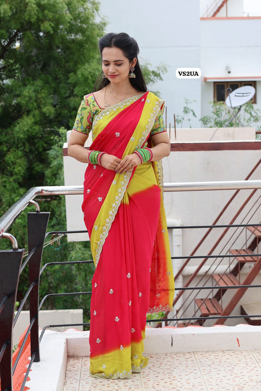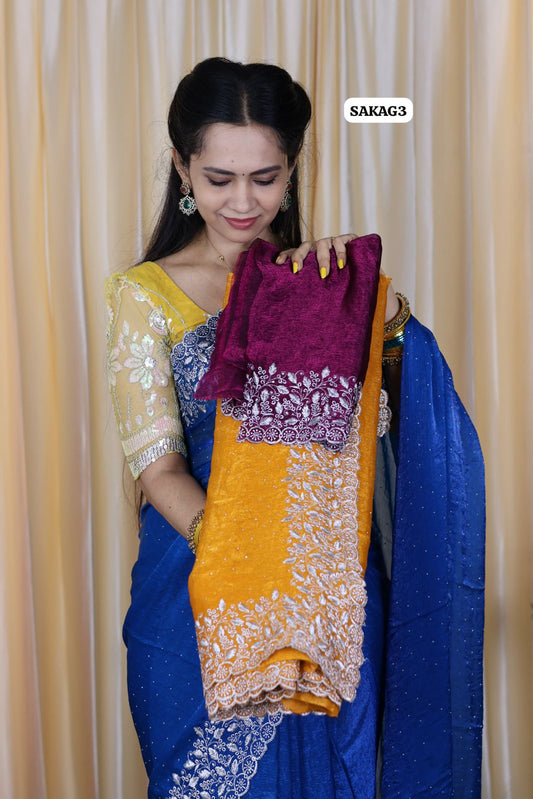 Premium Space silk saree with embroidery work and contrast blouse 🥳