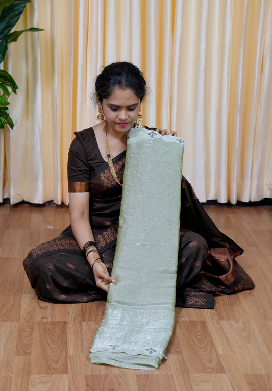 Kashmiri chiffon silk with zari border and vairaoosi zari all over the saree😍Ⓜ️