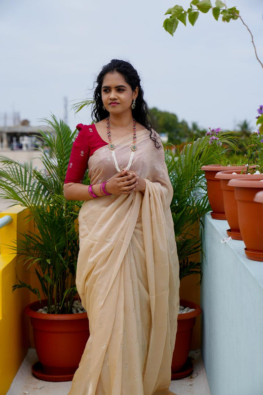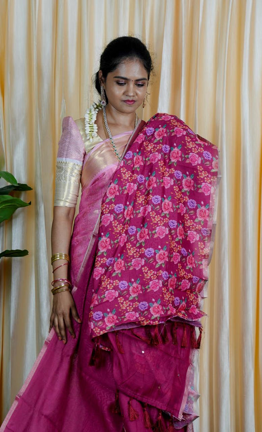 Space silk sarees.🥳with contrast blouse(Dark Pink) prebook 20-25 days