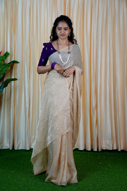 Handwork sequins and jardosi with cut work. Luxury Space silk + jimmy choo mixed fabric party wear saree 🥳 prebook 20-25 days