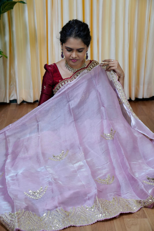 Space silk tissue sarees with heavy embroidery chumky work blouse unstitched🥰😎🥳✅