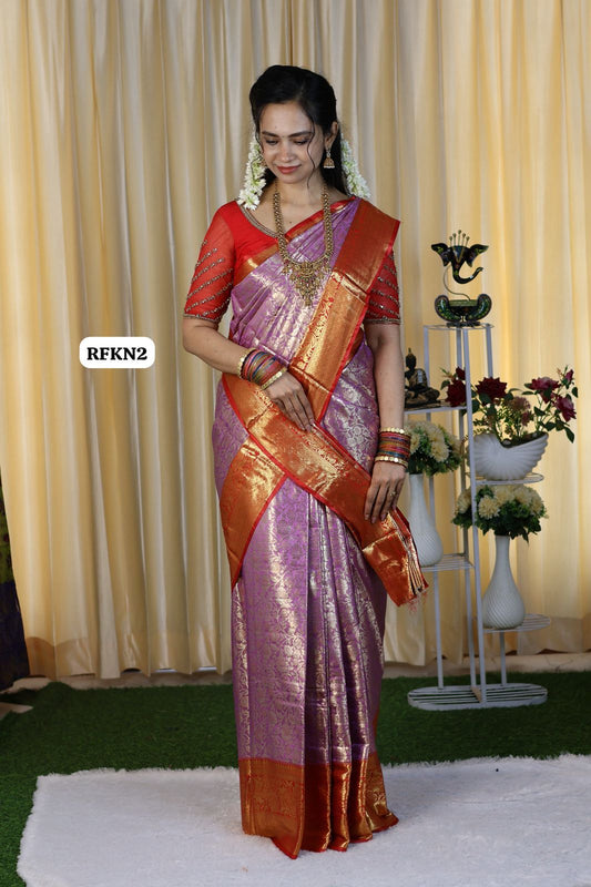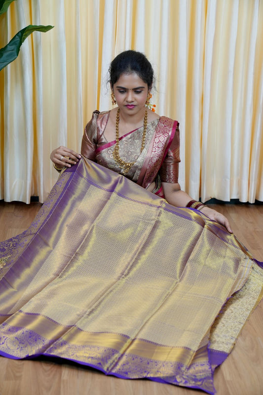 Golden zari kanchi semi silk saree with vairaoosi pattern with contrast blouse 🥳