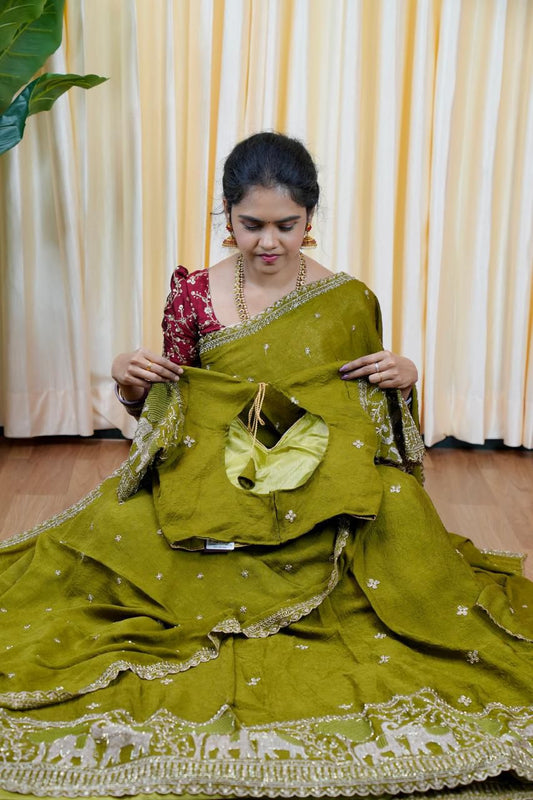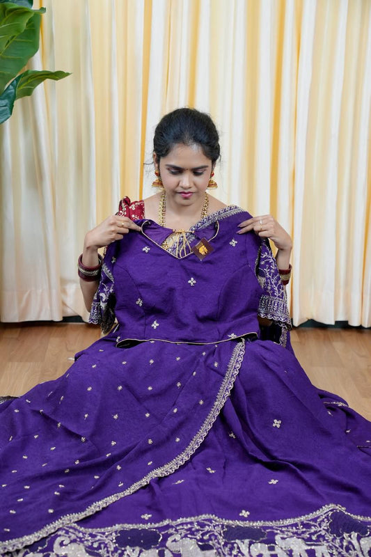 Half saree with stitched blouse and skirt 🥳