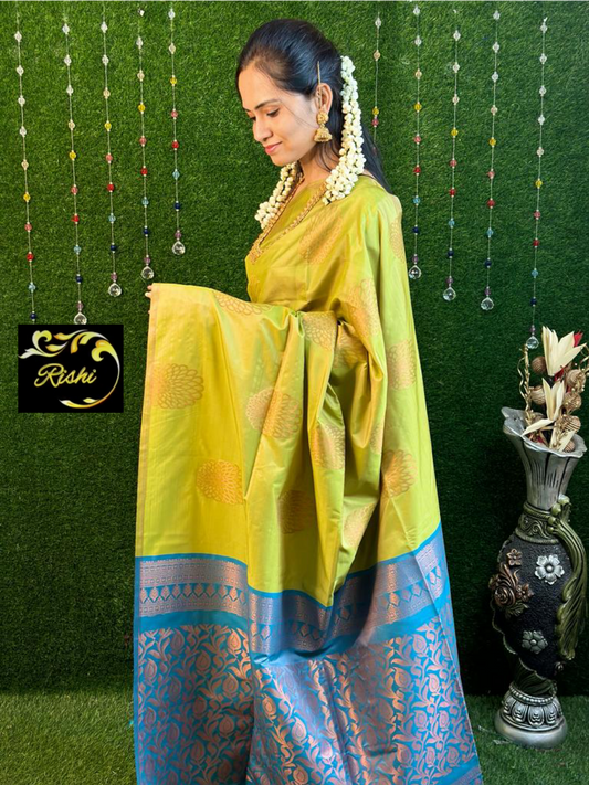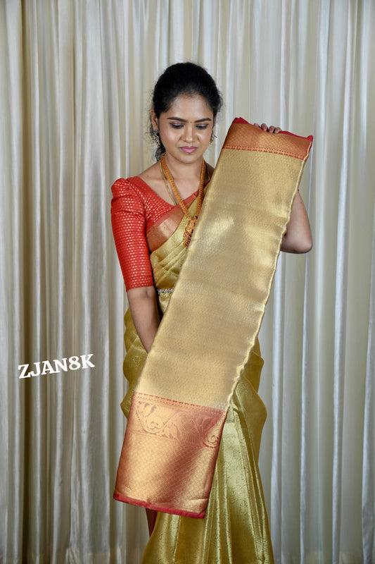 Golden zari weaving banarasi semi silk sarees prebook❌