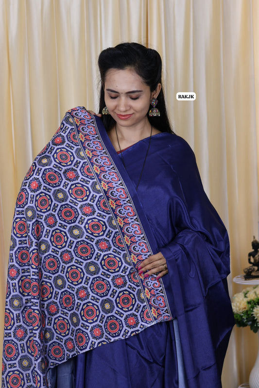 Most trending ajrak print chinnon .semi silk saree 🥳