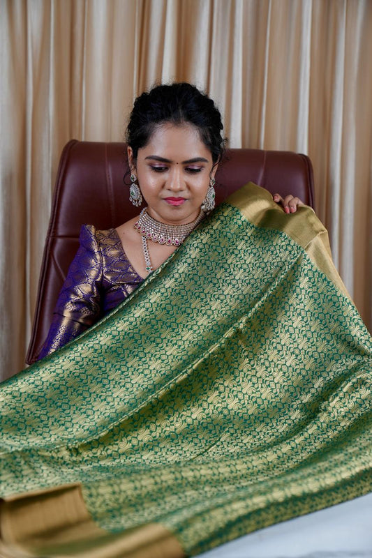 Kanchi bridal semi silk saree with runing blouse🥳Green with blue