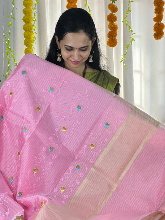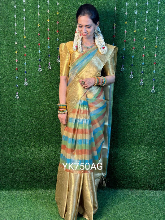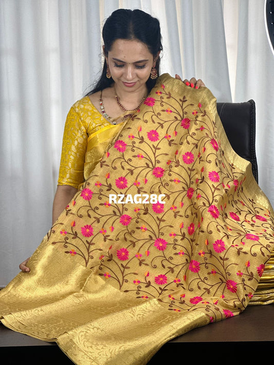 Aadi offer❤️Golden embroidery tissue saree🥰🤩