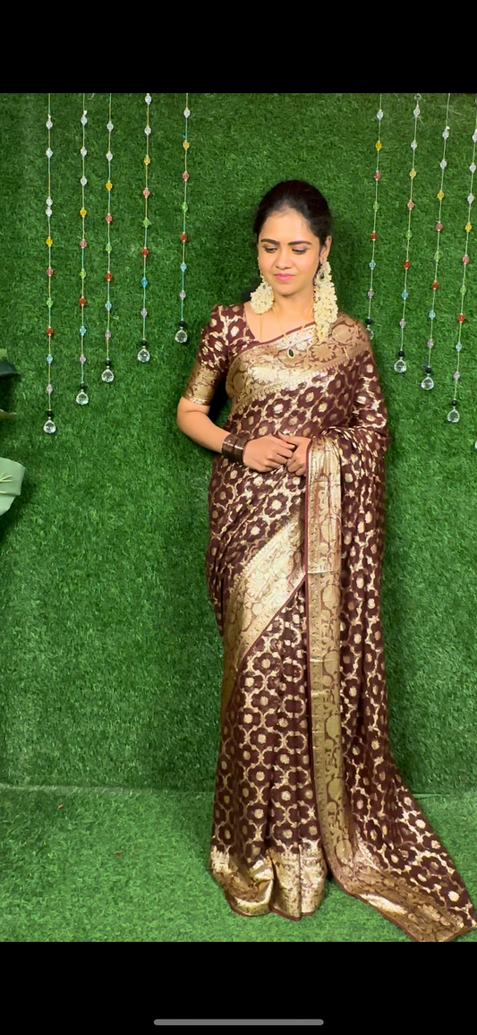 Just Rs.1099 Soft viscose chiffon zari weaving fabric and Buttas blouse😍🥳