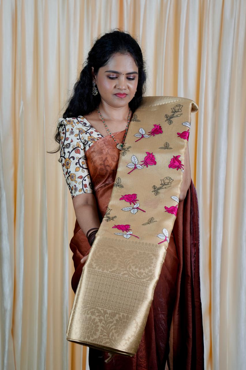 Aadi offer❤️Golden embroidery tissue saree🥰🤩