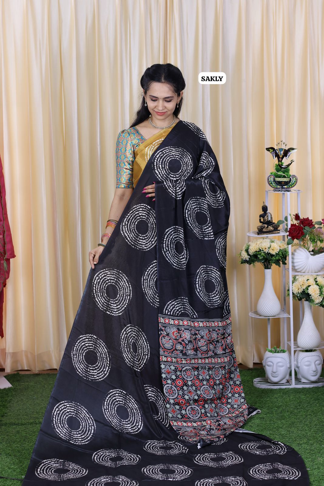 Ajrakh print saree.Satin silk šŸ˜šŸ„³