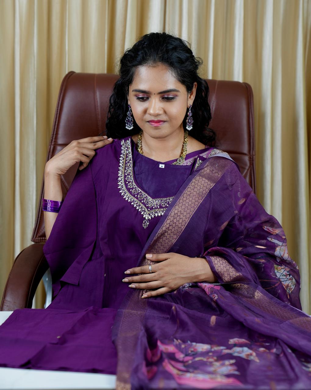 Fully stiched Premium cotton Silk fabric with hand work in neck (lining attached)