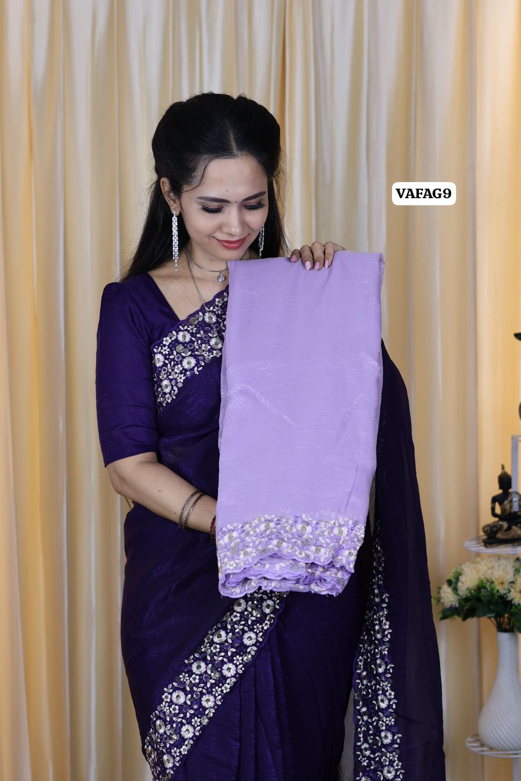 Crushed space silk with embroidery scalloped border at Rs 1250