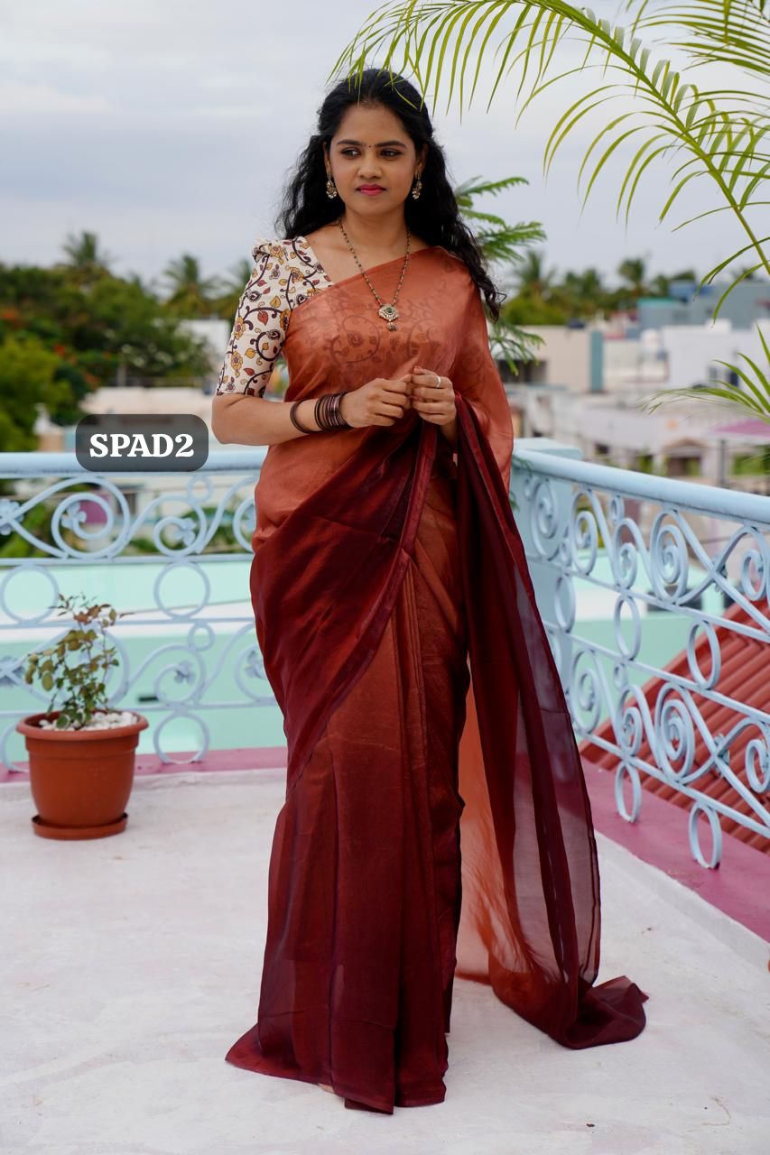 Double shaded Space silk sarees. ❌(unstitched blouse)
