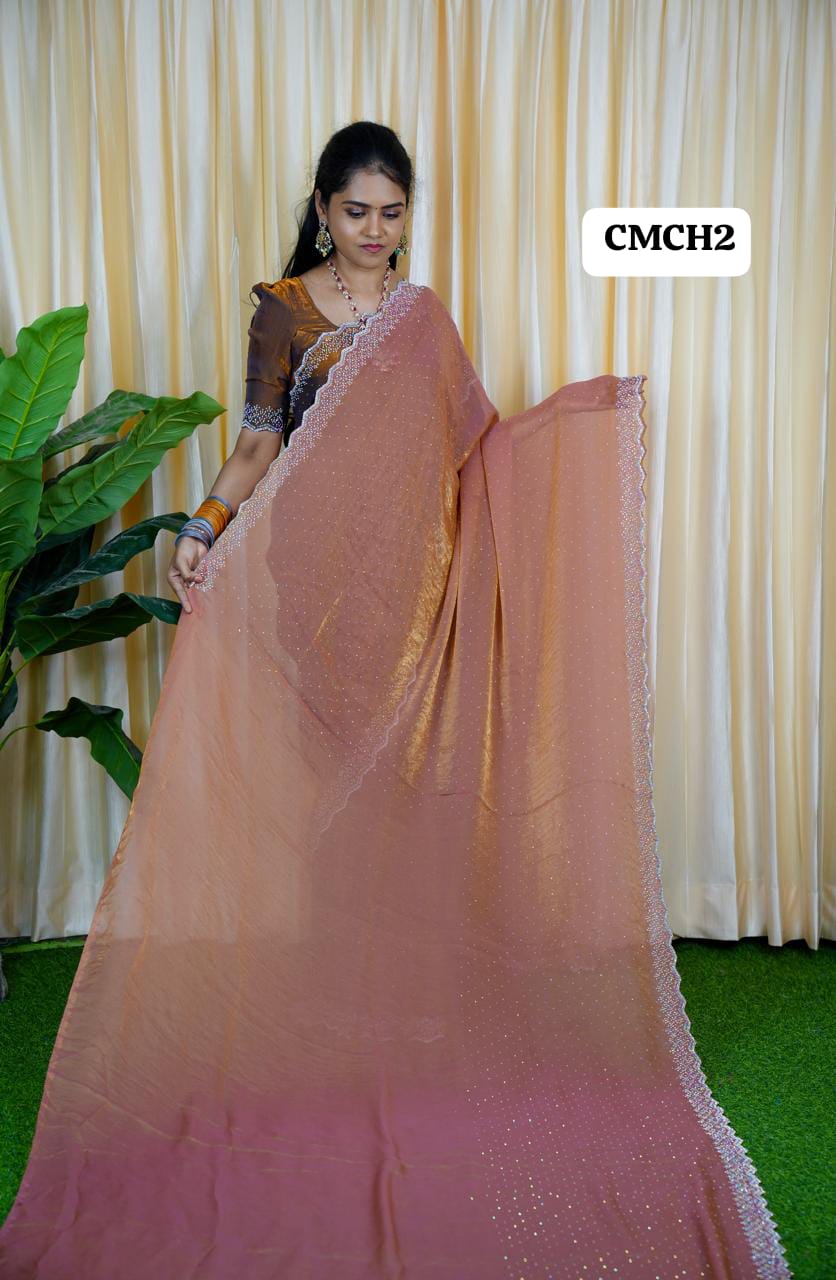 Premium Jimmy choo sarees with Full heavy pure Zarkan work
