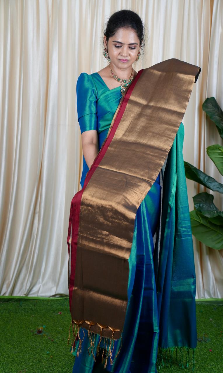 Kadhi cotton silk tissue mixed sarees with running blouse