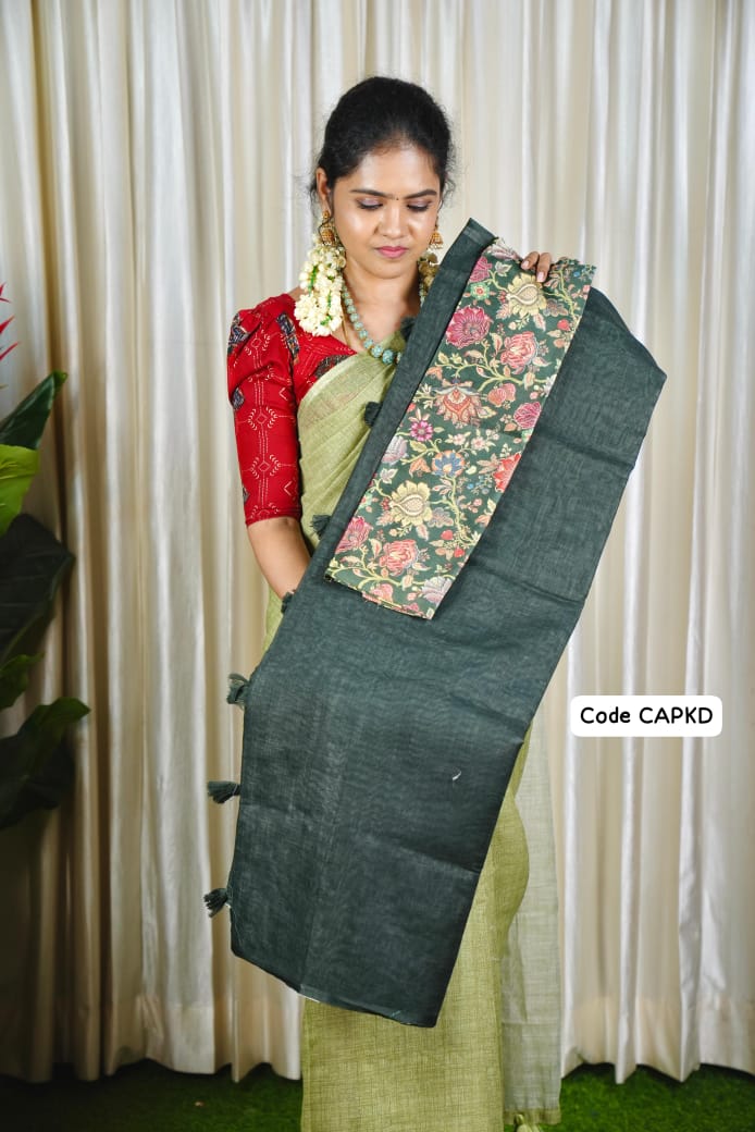 Kadhi Cotton Sarees with Contrast Kalamkari 👇