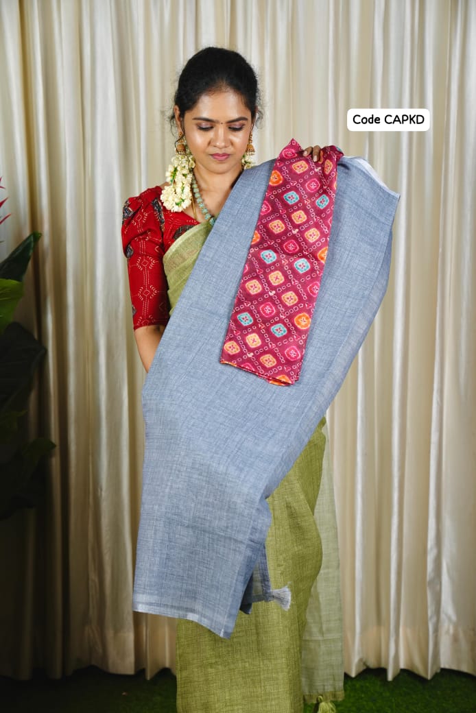 Kadhi Cotton Sarees with Contrast Kalmkari Blouse