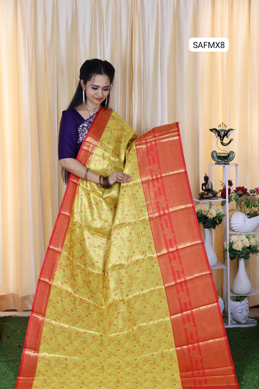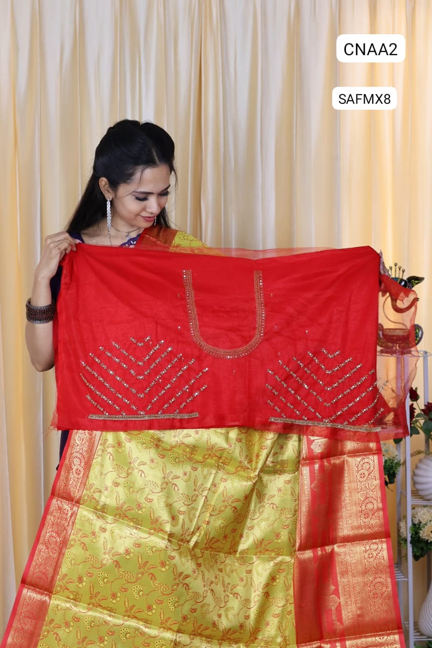Kanchi bridal semi silk saree with Premium quality net work aari blouse Combo ( unsistched ) 🥳