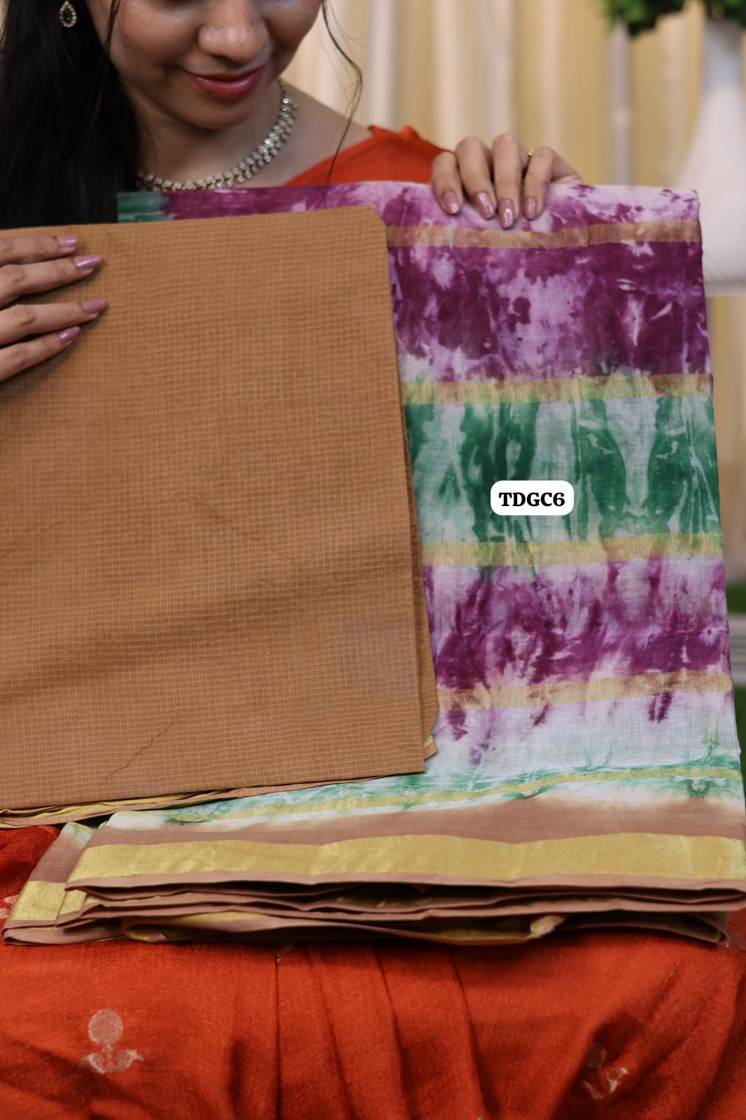 Kanchi cotton saree with bandhini design