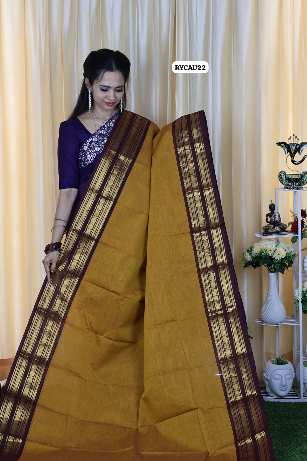 Kanchi cotton saree with running blouse Dark Mustard yellow❌