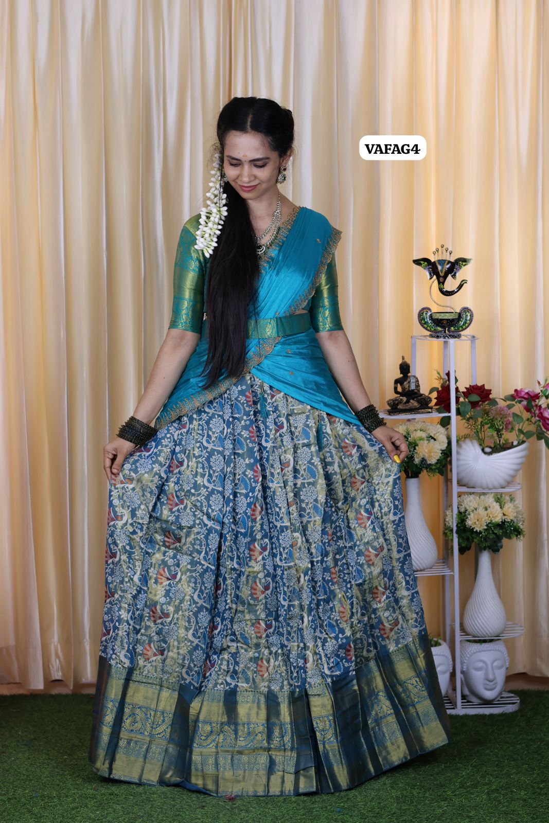 Kanchi semi silk zari weaving with peacock design weaving comes with contrast weaving border with brocade weaving blouse