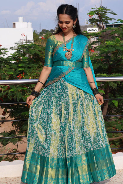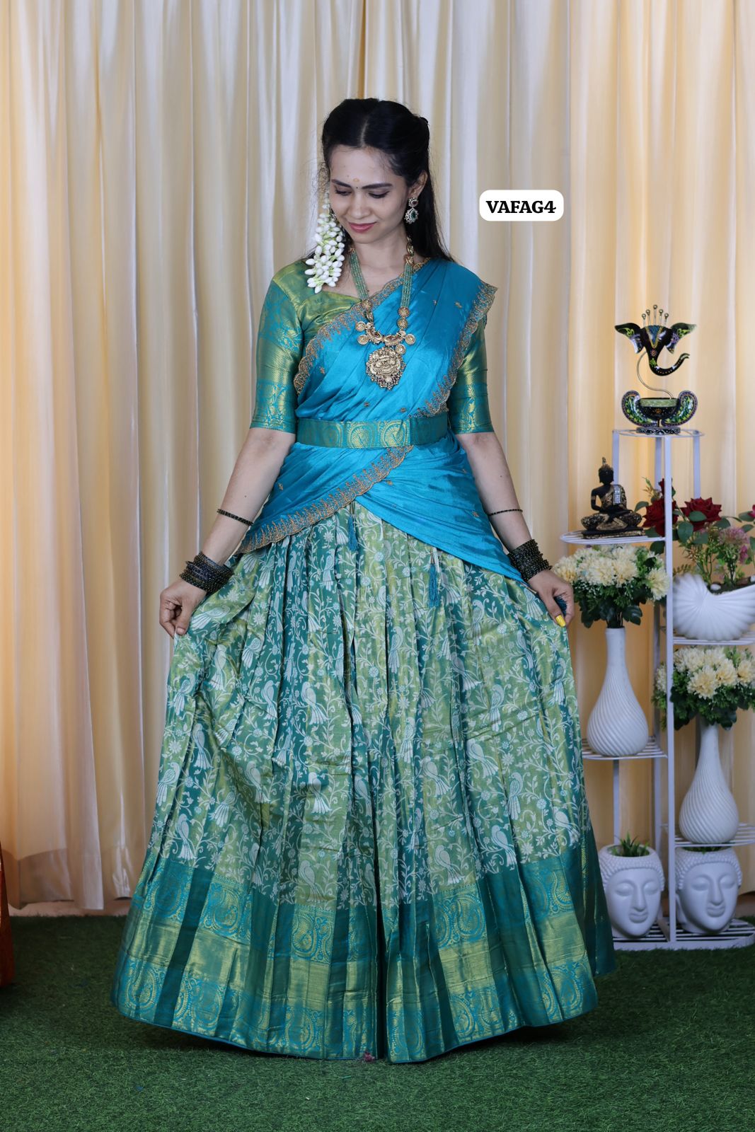 Kanchi semi silk zari weaving with peacock design weaving comes with contrast weaving border with brocade weaving blouse