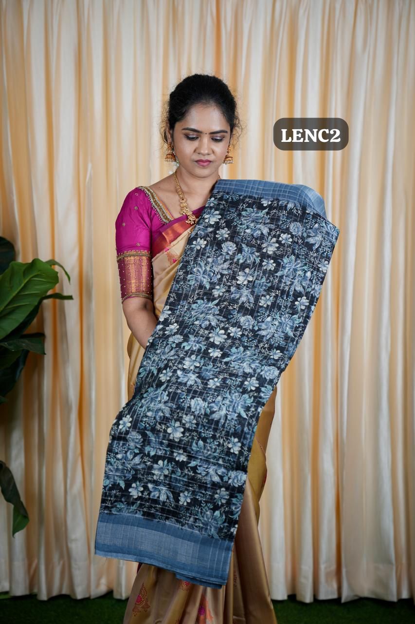 linen cotton with Silver Zari Checks