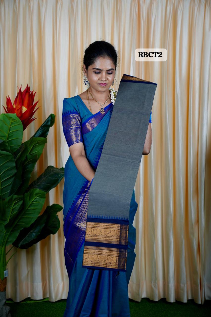 Kanchi Cotton Saree 🥰 😎gray with heavy blue