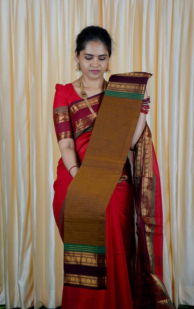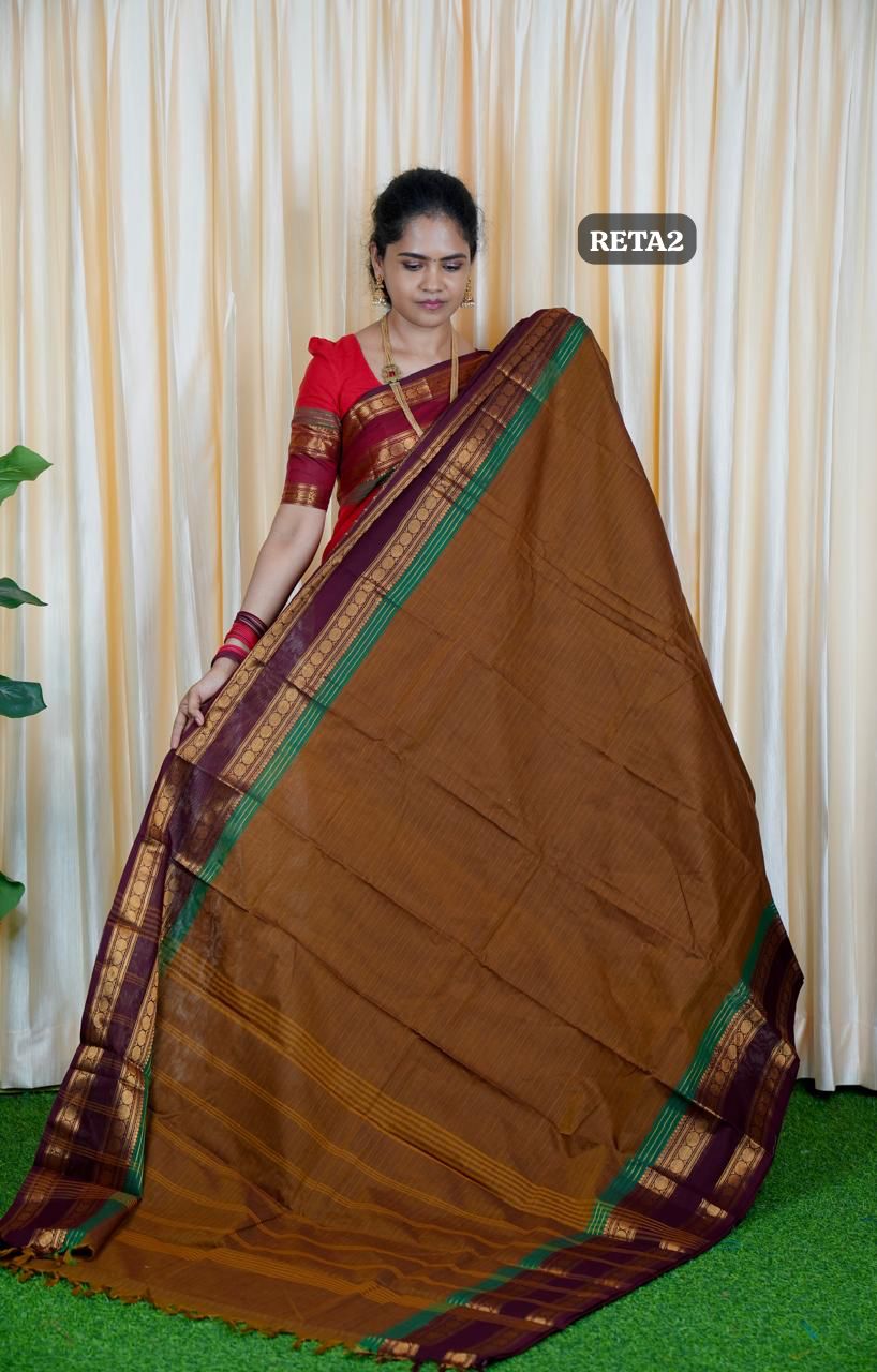 Premium kanchi cotton sarees with retta petta border with running blouse