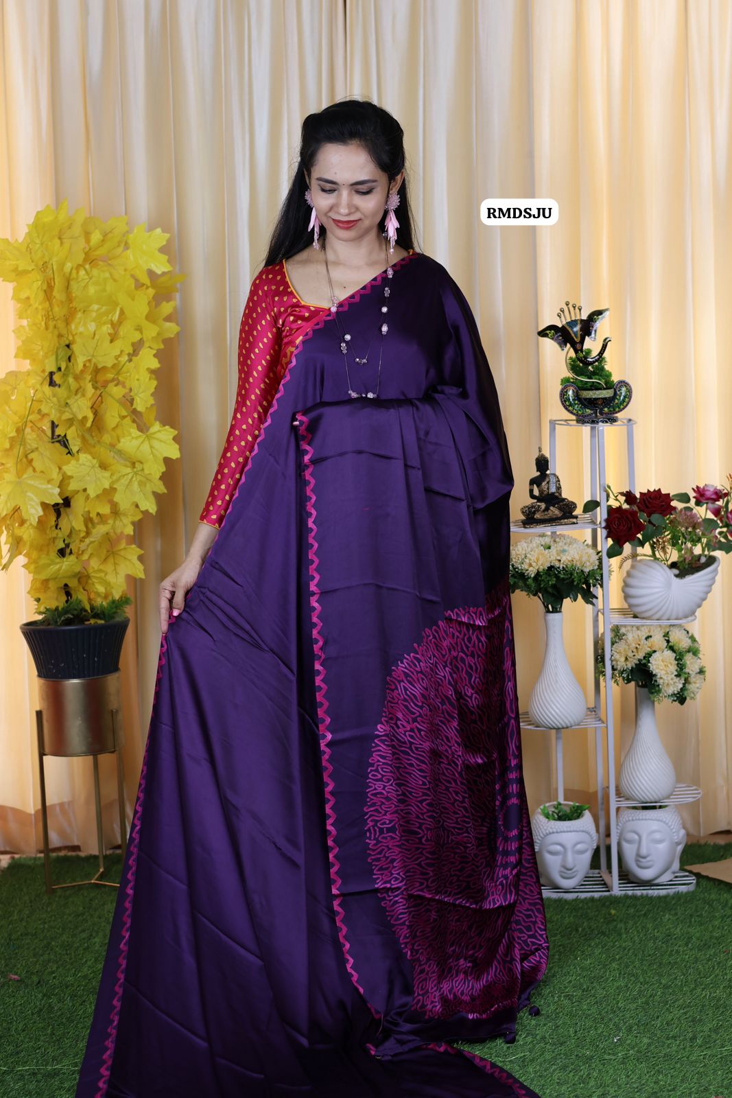 premium modal satin silk saree with heavy latkan