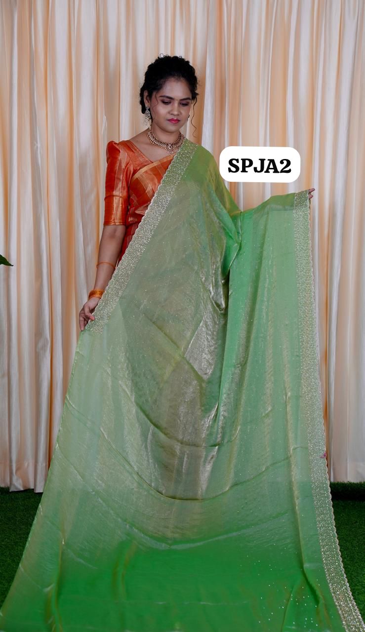 Premium space silk sarees with real jarkhan diamond work🍏📍🥳Elaichi green