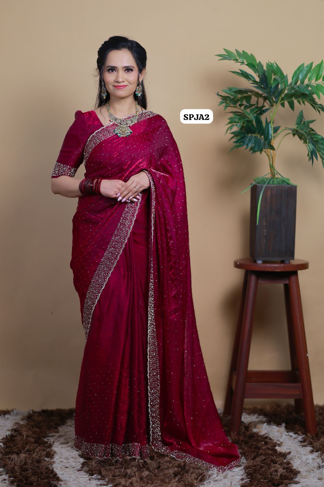 Premium space silk sarees with real jarkhan diamond work.πππ₯³dark rani pink