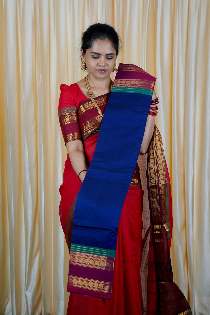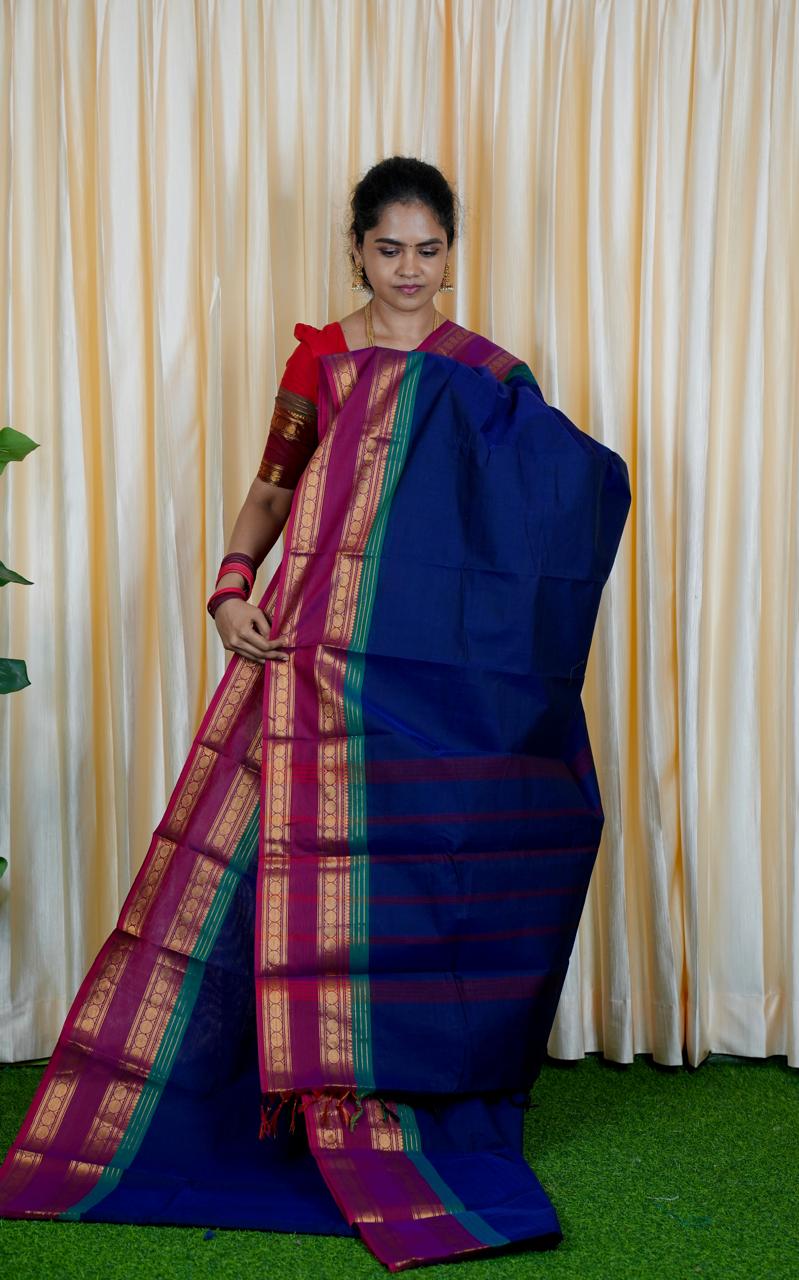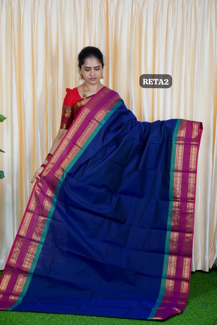 Premium kanchi cotton sarees with retta petta border with running blouse